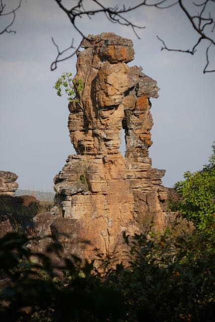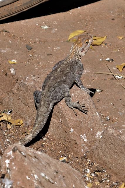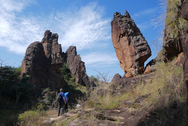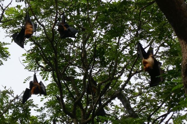 Reaching the bottom of the Upper Falls was absolutely fabulous, and, leaving Doodgie a little way up the track, I went down to have an impromptu shower in the spray. We rested a little while and I persuaded myself to eat a mouthful of my UK-originated peanut protein bar, regretting that I hadn’t brought Dextrose tablets with me. We were not alone: across the gorge from us were hundreds of straw-coloured fruit bats that make the cliffs of the Falls their home. Clearly they hadn’t read the rule book either, foraging relentlessly in the heat of the day.