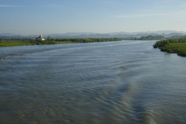 I’d long wanted to take a boat down the Irrawaddy (or up, I wasn’t fussy, although travelling immediately post-monsoon suggested downriver would be quicker), the age-old “road to Mandalay”, for the sheer romance of it, but the logistics involved in trying to fit in everything that I wanted to do during this trip in a vaguely logical manner did not permit. In consolation – although, realistically, I had no other option for this particular journey – I decided to take the boat from Mrauk U to Sittwe, winding along the tributaries of, and debauching into, the Kaladan River which, at Sittwe, then joins the Andaman Sea. After the excitements involved in getting to Mrauk U, a bus journey of a little over 21 hours, a serene 4½-hour boat trip sounded sublime, even if it did involve an early-ish start, the boat scheduled to leave Mrauk U at 7 am.