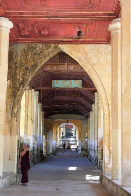 The covered walkways up to the Paya were empty of the usual panoply of stalls that decorate key Buddhist temples elsewhere in the country, leaving me to ascend the steps in unexpected tranquillity. At the top, as I paused to get my bearings, I found myself assaulted by a barrage of teenage girls, smartphones to the ready, keen to photograph and be photographed with a hot and sweaty foreigner in sunglasses and a bush hat. I couldn’t see the attraction myself, but smilingly gave in, until it seemed to be getting a little out of hand and I gently drew the line. If this was a hint of what the paparazzi do to celebrities, give me oblivion. I parted from the giggles and phones, and wandered off to find Kipling’s view.