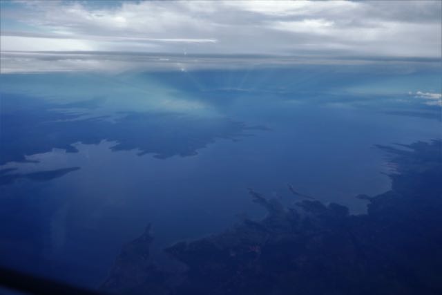Back on board, I re-joined my holdall. I had decided to take a seat on the upper deck of the two-tier boat, “upper class” as a couple of Kiwis I met later suggested. There were several rows of large heavy wooden seats, fixed together in hefty racks of three, with the distant memory of seat numbers white-painted on the back, and a couple of stacks of red plastic chairs for the late arrivals. The Kiwis found themselves in a bizarre debate with a matriarch of a decent-sized clan about seat allocation, although I couldn’t see anything on my ticket that purported to suggest a seat number, and somehow they managed not to be ousted. It was not the world’s most comfortable seat, I have to admit, but I dug out my thermal jacket, surprisingly useful as a pillow in its pouch (as I’d already discovered on the overnight bus ride), wriggled my bones around and looked back at the shore and the arrival of my fellow passengers.