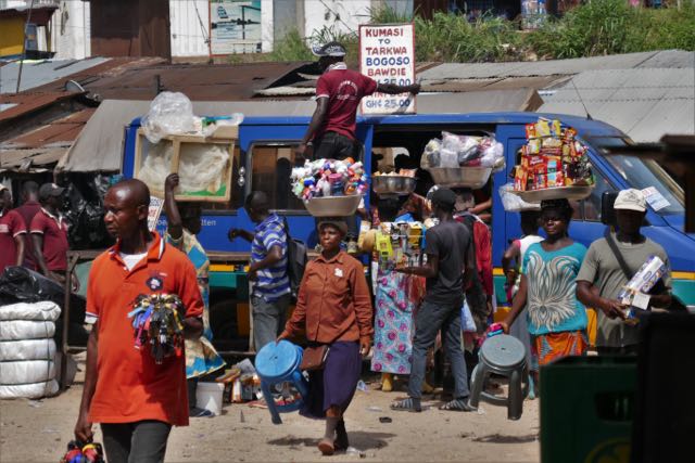Filling up a trotro, this one in Kumasi