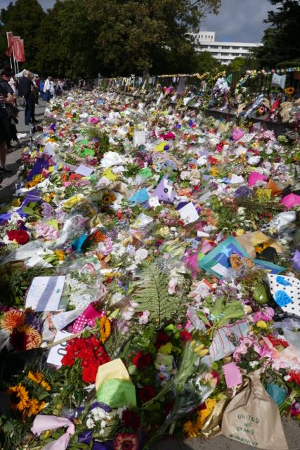 mosque. The floral tributes outside the