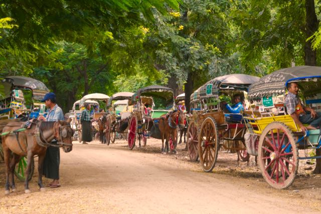 To explore Bagan requires transport. Even the walkaholic has to admit defeat here. With the government banning motorbike-taxis and thoun bein from the temple area, the tourist’s choices are a horse-and-cart, DIY bicycle or “e-bike” (a battery-fuelled moped), or, to the extent that it can make it through the sandiness of many of the tracks, a taxi.