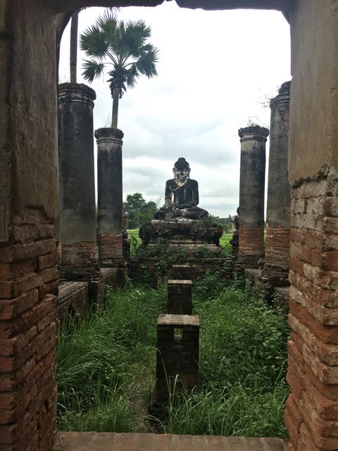 Slightly less than two days’ later, I set out again, on foot this time, to explore the temples of Mrauk U. Here the landscape is hilly, and practically every lump of ground is crowned by a stupa of some description. The dark grey stone and imposing designs make the temples here impressive rather than picturesque, but their immediacy, their lack of tourist paraphernalia appealed to me enormously. On my second day, when I was exploring temples further afield, I frequently found myself on my own, not even a farmer in a nearby paddy-field or gang of kids tagging along. The audio backdrop was pure nature, timeless. It may have been a tad on the warm side – 32C with xx% humidity, “feels like 38C” my phone kindly informed me – but I was relishing every minute of it…