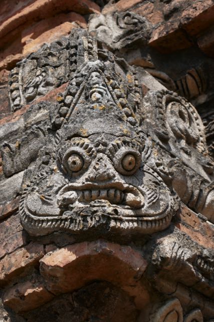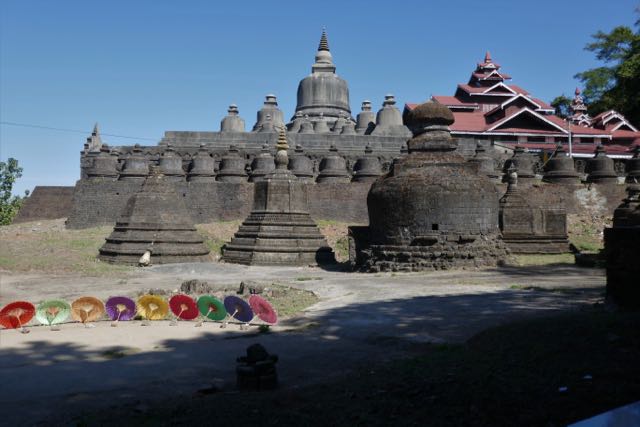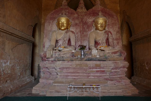 The majority of Bagan’s temples are built of a rich red brick with a smattering of white-washing and gold around; with only one or two exceptions, Mrauk U’s of a dark grey stone, and some so much more resemble defensive structures than religious buildings that they have been mistaken for forts.