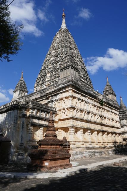 Back on the ground and after a suitable snooze to recover from the painfully early start, I bit the bullet on the e-bike experience. Once I’d got going, I found it a lovely way to travel. Almost silent, yet reasonably speedy. But starting and stopping remained challenging, even after a second half-day on board the next day. These small technicalities to one side, it was the perfect way to travel around to fill in the temple gaps, taking me to Old Bagan (where I wimped out and parked the bike by the city gates, electing to go around temples on foot) and further afield to the Myinkaba and New Bagan temples. My last stop was Mahabodhi Paya, modelled on its namesake in India which commemorates the spot where the Buddha attained enlightenment. I’m not sure I’d attained much beyond a couple of hundred photographs, a scraped calf and a bruised hip, but I was happy, and, after returning my steed to its stable, went off to commemorate my achievements with a large cold beer at the delightful social enterprise restaurant, Sonan.