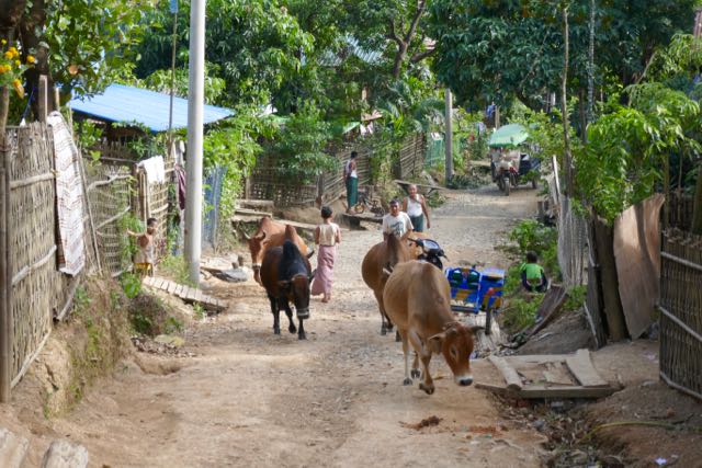 In Mrauk U, the only temple that has any accompanying touristiness is Shittaung Paya, the one place every (honest) foreigner must visit in order to pay the entrance fee for the whole site. Even here, I found far more locals and Burmese tourists than firangis. It’s as if Mrauk U hasn’t really woken up to the potential for international tourism, though its remoteness will continue to hamper its development in this regard and there’s no doubt that recent events, already affecting bookings in the rest of the country, will have clobbered tourism here in Rakhine state itself. Hotel options are limited, restaurants even more so, and there’s almost no ancillary services market. Even the tuk-tuks (here called “thoun bein”) seem shy in offering their taxi services. Firangis are unusual, stared at, giggled at (or with), English shyly practised by the more daring.