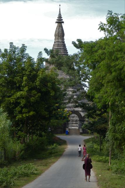 In Mrauk U, on the other hand, there is a lovely immediacy and relevance to the temples. They are in the middle of paddy fields, up the hill from the nearby village, part of the furniture, as it were, and many have their own attendant monks and/or nuns: part of the here-and-now.
